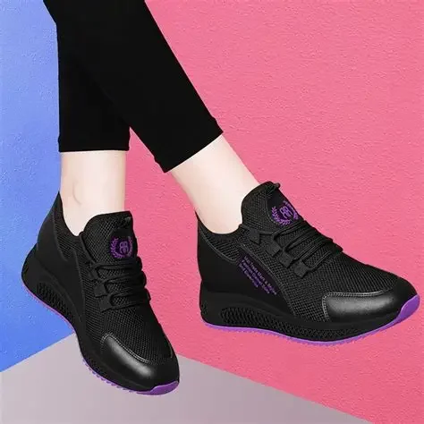This image shows lightweight casual sneakers designed for everyday walking and comfort. They feature a breathable mesh upper, lace-up design, and cushioned sole for support. The shoes are shown in multiple color options (blue, pink, and purple), making them suitable for daily wear, travel, or light exercise.