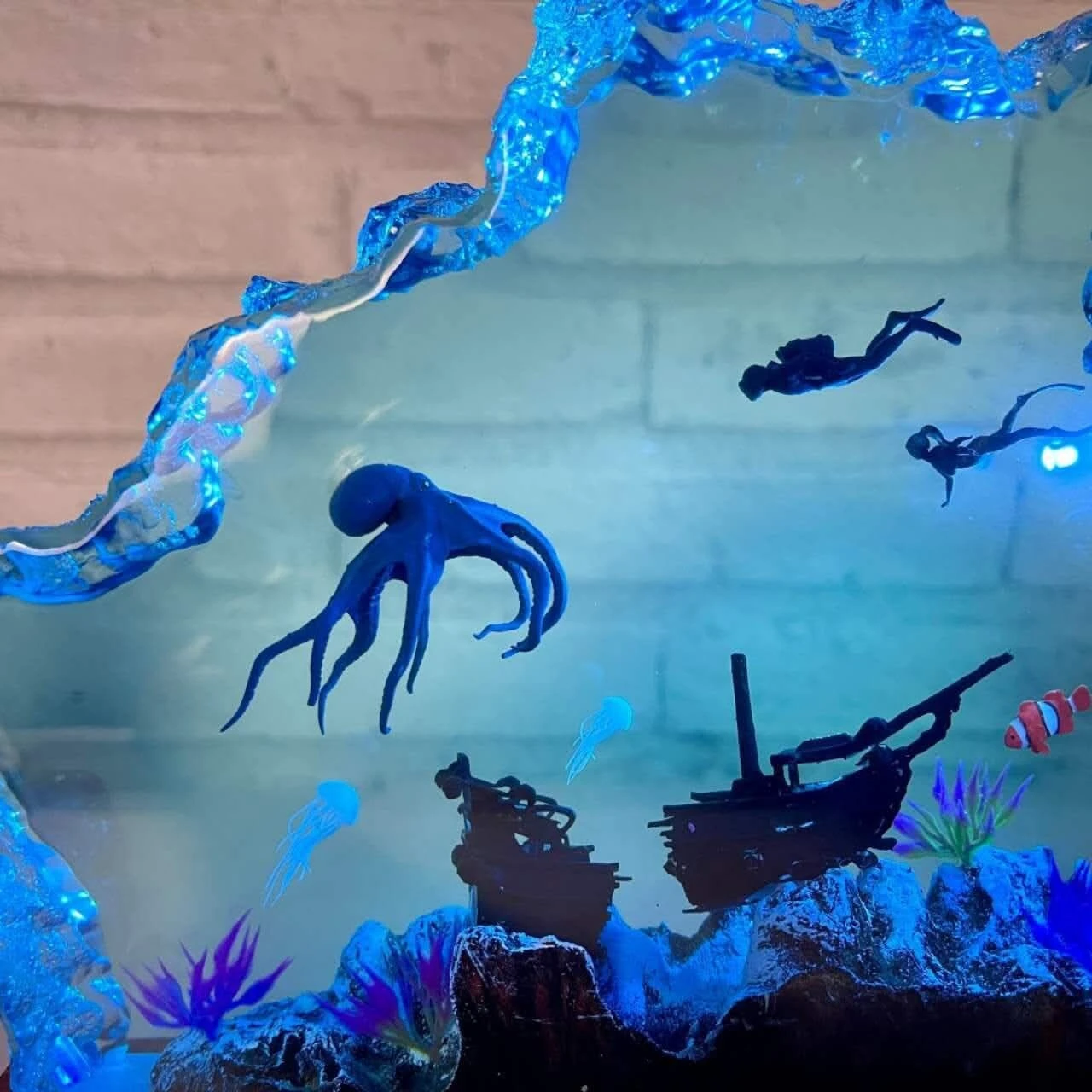 This is a handcrafted resin art LED ocean décor lamp with a deep-sea adventure theme 🌊⚓